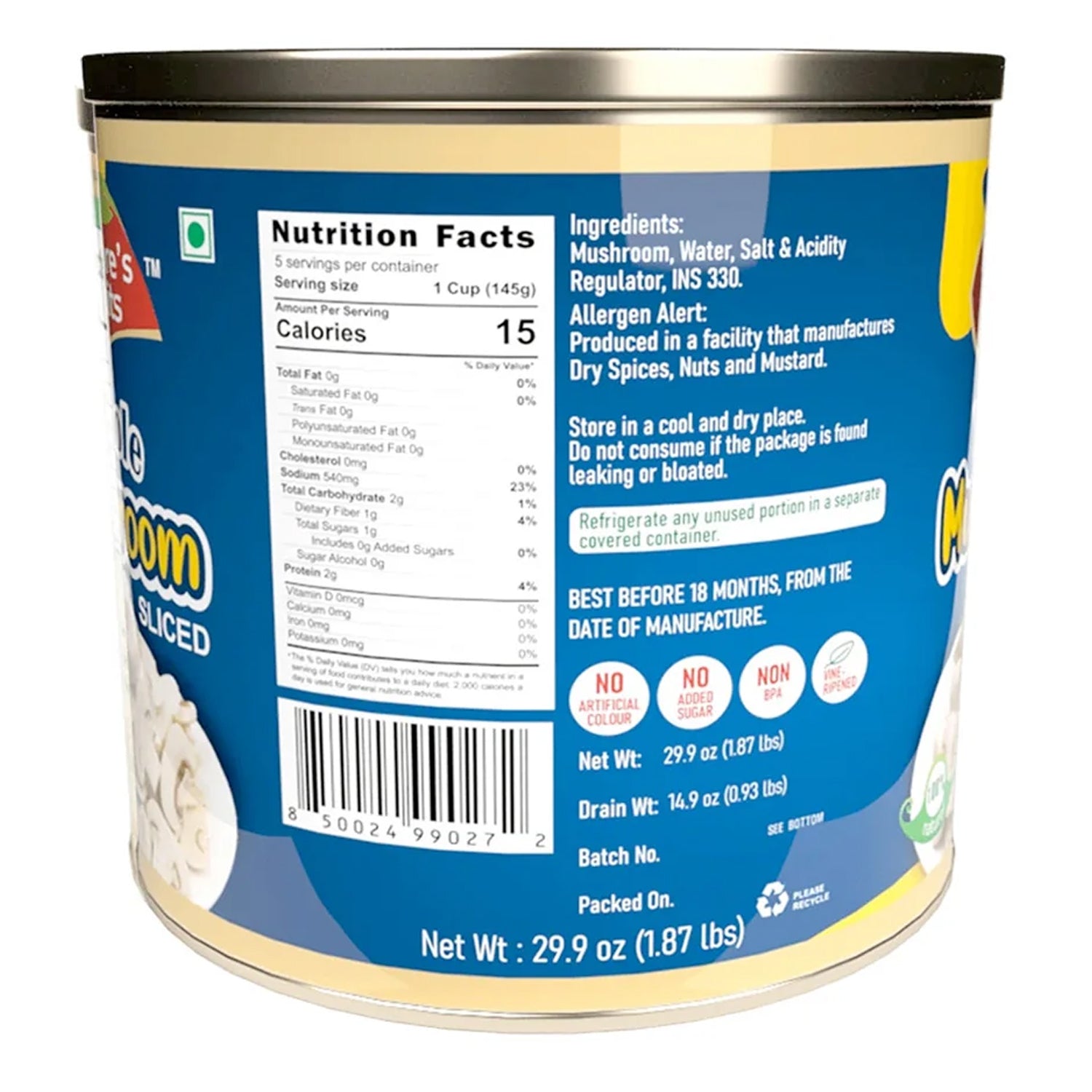 Nature's Fruits Medium and Large Whole Button Mushrooms are round white mushrooms with a slightly sweet and earthy flavor. These button mushrooms are Ssliced to perfect, small and firm with a lovely juicy texture. Canned mushrooms can be used in a variety of dishes, from tasty sauces, sides and soups, to being the star of the show by themselves. All these white mushrooms need is a little garlic, butter and fresh herbs to serve as a main dish.