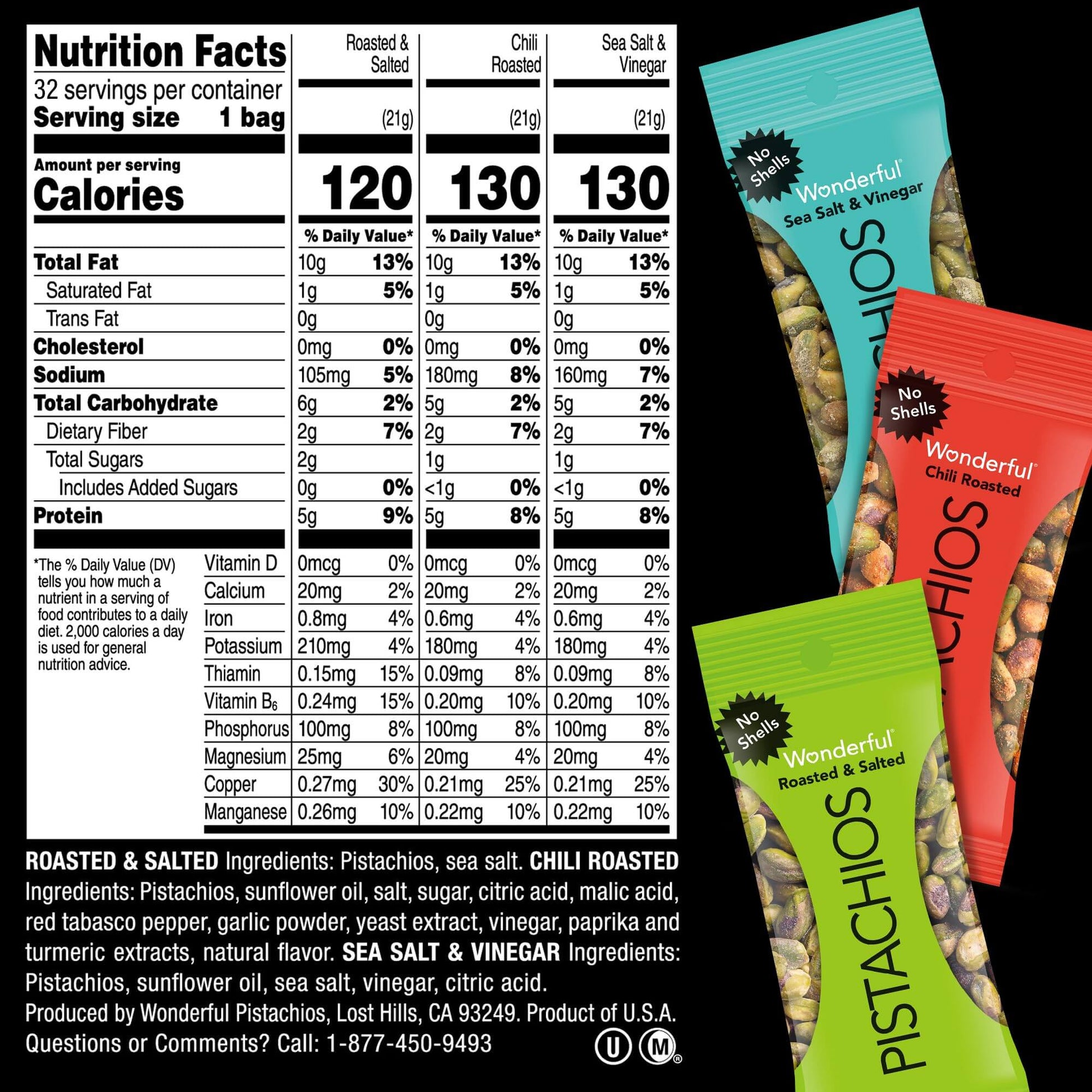 Enjoy the convenience of Wonderful Pistachios No Shells in this viral variety pack! Featuring trending flavors like Chili, Honey Roasted, and more - these premium California pistachios are pre-shelled for easy snacking. High in protein, gluten-free, and absolutely delicious!