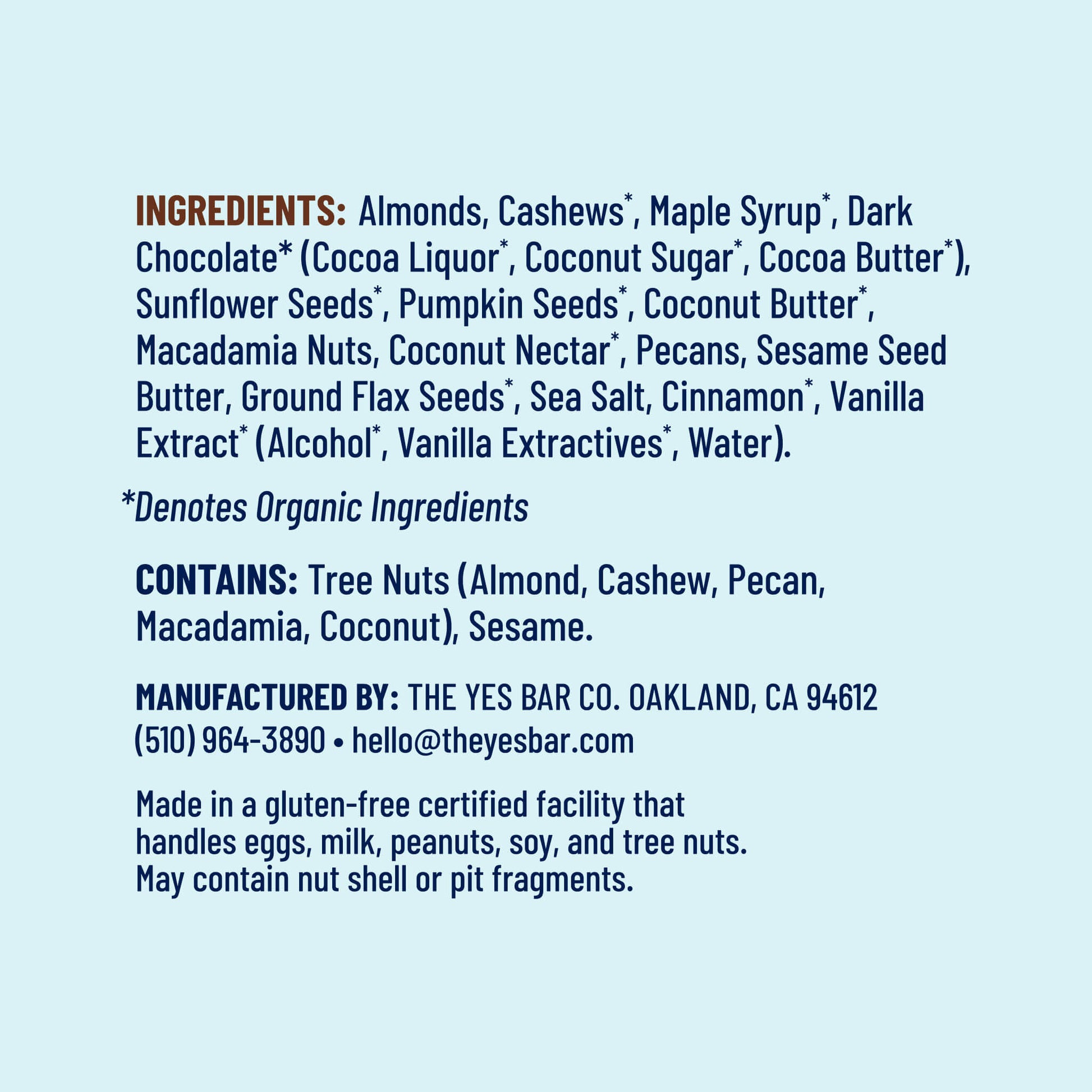OUR BEST SELLER! Enjoy the decadent taste of a chocolate chip cookie in a better-for-you bar format. YES BAR® Dark Chocolate Chip Pack is with plant-based ingredients like almonds, maple syrup, dark chocolate, and fresh Saigon cinnamon, this flavor is truly a guilt-free treat. It's crunchy, chewy, nutty, decadent, plant-based goodness.