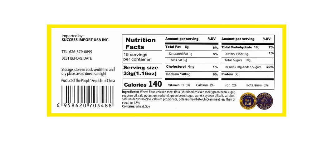 Rousong Chicken Meat Floss Cakes are perfect if you're looking for a salty, savory treat. Each pack comes with 15 soft cakes featuring a thin, flaky outer layer filled with meat floss, or rousong, a light and fluffy filling made from dried, shredded chicken with a mouth-watering seasoning that's both salty and sweet. They're perfect for an afternoon snack or sharing with friends. Rousong is popular in China as well as in South East Asian countries.
