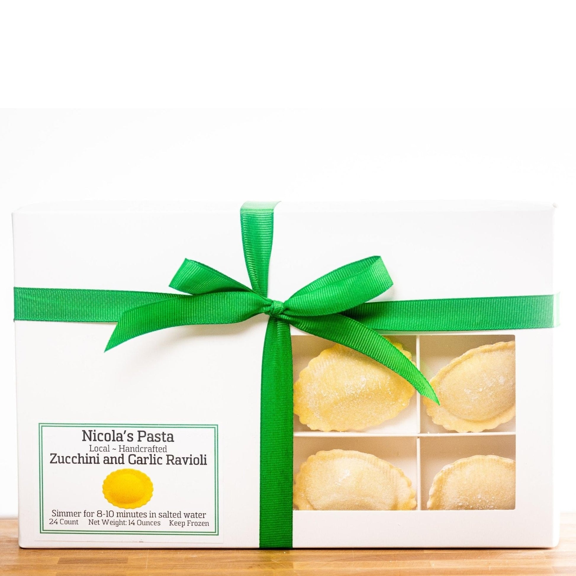 ##0##Enjoy a unique, flavor-packed blockbuster delicacy within our ravioli menu — Zucchini and Garlic Scape Ravioli. This gourmet and artisanal vegetarian ravioli has the goodness of organic unbleached semolina flour imported from Italy and farm-fresh Zucchini and Garlic Scapes and slowly roasted until caramelized. Is your mouth watering already? Why shouldn’t it be, after all, we make it in traditional Italian style using freshly sourced organic eggs and Parmigiano Reggiano. Zucchini and Garlic Scape Ravioli is perfect for dinner or lunch and great for anyone who loves vegetarian delicacies. It’s made fresh to order and flash-frozen to retain freshness. So, it contains zero preservatives. Order this Italian deliciousness today and delight your family and friends.